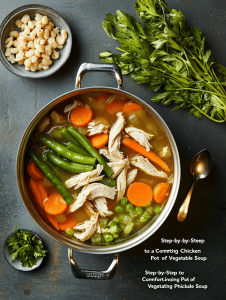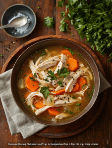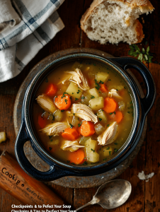 - Let the soup simmer for another 5 minutes to meld the flavors. The broth should be clear and flavorful, with tender vegetables and juicy chicken pieces.