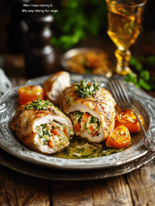 This dish features tender chicken breasts filled with a savory mixture of sun-dried tomatoes, melted mozzarella, and fresh basil. The chicken is seared until golden and crispy, then baked to perfection, resulting in a juicy, flavorful filling encased in a beautifully browned exterior. It’s an elegant yet straightforward recipe perfect for weeknights or special dinners.