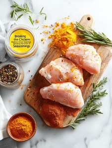 4. Sprinkle the seasoning generously over both sides of each chicken cutlet, pressing lightly to adhere.