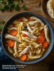 - Taste the broth and adjust seasoning if needed. The soup should be clear, vibrant, and steaming hot, with tender vegetables, juicy chicken, and al dente noodles.