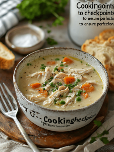 Step 3: Pour in chicken broth, bring to a gentle simmer, then add shredded cooked chicken. Let it simmer for 15 minutes to meld flavors.